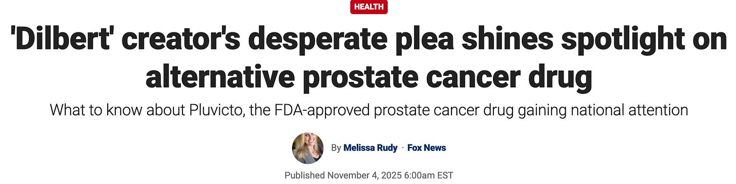 A few days ago, Scott Adams the famous creator of the “Dilbert” cartoon, posted a plea to President Trump to help him persuade the hospital to approve treatment with an experimental medication for his metastatic stage 4 prostate cancer. This produced a response from the president as well as much media coverage. It left me feeling confused.